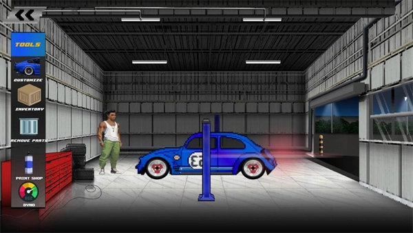 《像素汽车鲁莽赛车》是一款集深度车辆改装与街头竞速于一体的像素风格驾驶游戏。它跳出了单纯速度较量的框架,把核心玩点聚焦在PARK(泊车/停放)、TUNE(调校/改装)、RACE(竞速)的闭环体验里。你既要在赛事中奋力夺冠赚取资金,更得在车库中亲手打磨座驾的每一处细节——从引擎、传动系统到外观套件,打造专属的终极赛车,再到赛道上检验自己的改装成果。