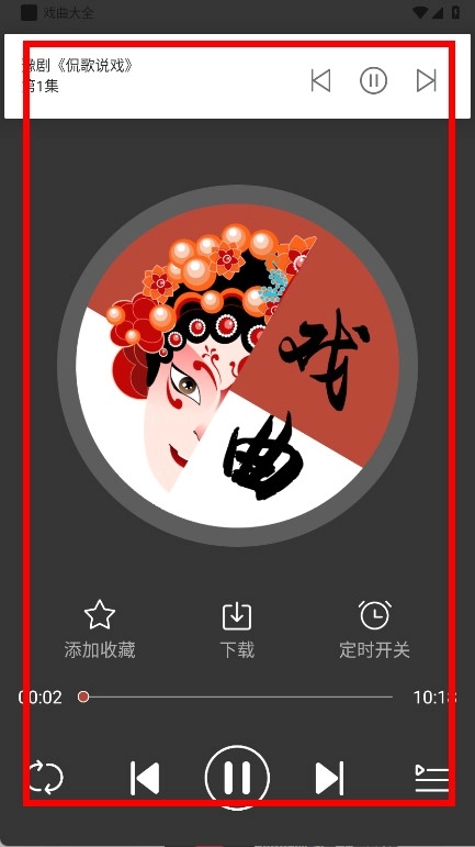 进行播放、暂停,还能添加收藏、,欣赏戏曲内容。