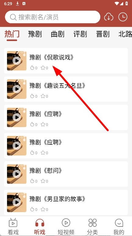 在听戏页面的热门列表里,选择要听的戏曲并点击。