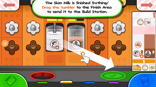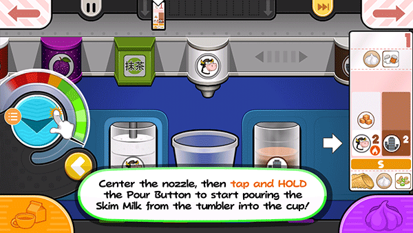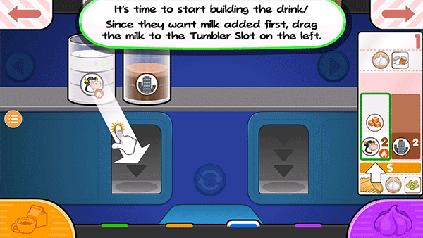 13、是时候开始制作饮料了!因为他们想先加牛奶,把牛奶拖到左边的不倒翁槽