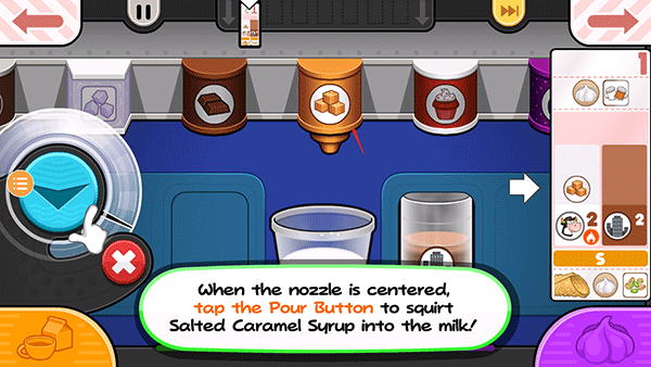 16、这款饮料需要在牛奶中加入咸焦糖糖浆!拖动箱子,直到盐焦糖糖浆在杯子中央