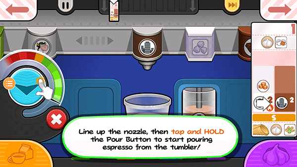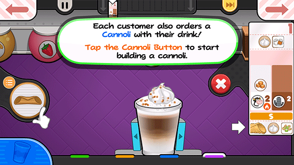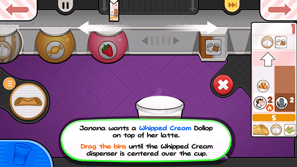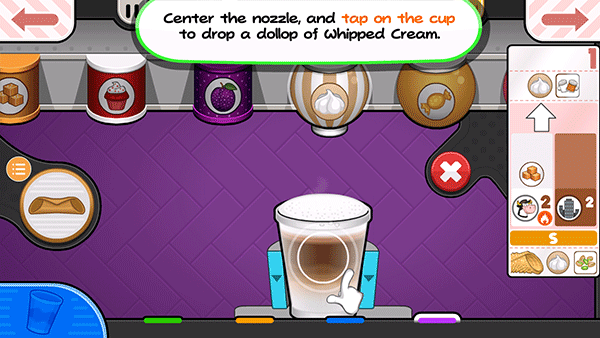 14、贾纳纳想要一个小的Papaccino,点击小杯子的S按钮。