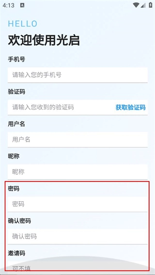 在光启的登录界面,选择“没有账号,前往注册”的选项,即可进入注册页面。