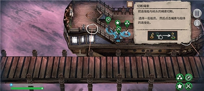 把船员全部移动到船上后,切断绳索就可以开始逃离。