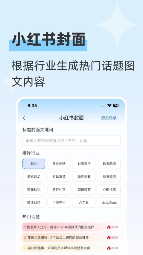 打开应用即可生成所需的行业图文壁纸,还能创作原创的笔记内容。