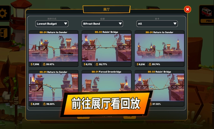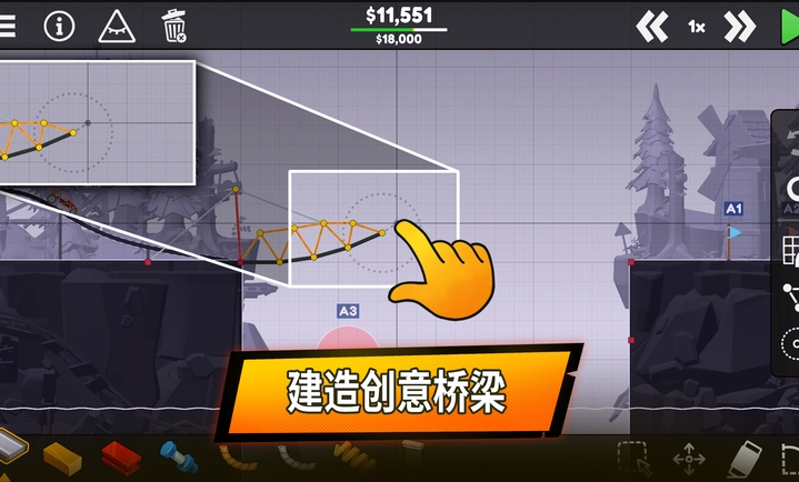在沙盒模式里,尽情释放你的工程创意,让桥梁建造的本领得到极致展现。你可以设计出充满巧思的关卡,为朋友和社区伙伴带来别样挑战,更能将作品分享至网络,让大家一同体验其中的乐趣。