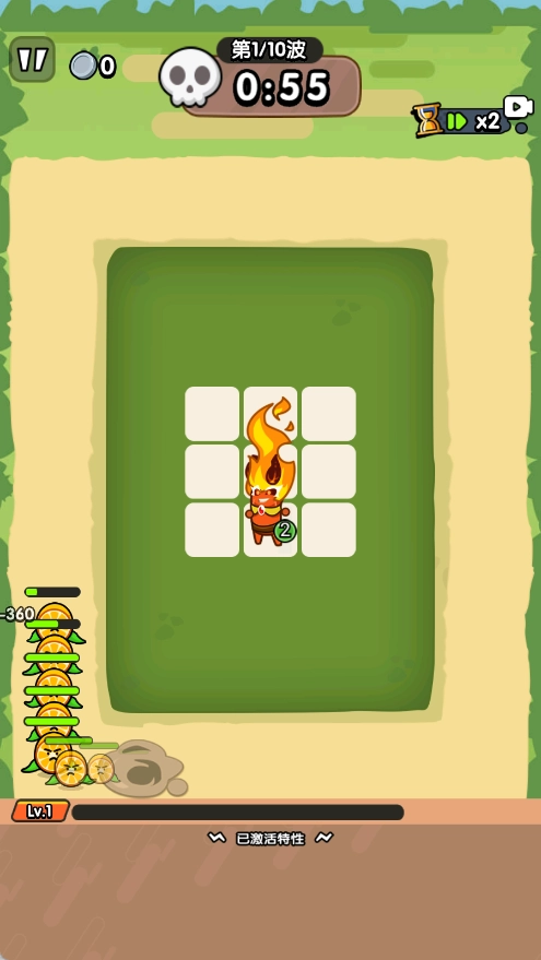 进入战斗状态后,精灵会主动对入侵的植物发起攻击,界面上方会展示剩余的攻击波数以及当前的实时战斗情况。