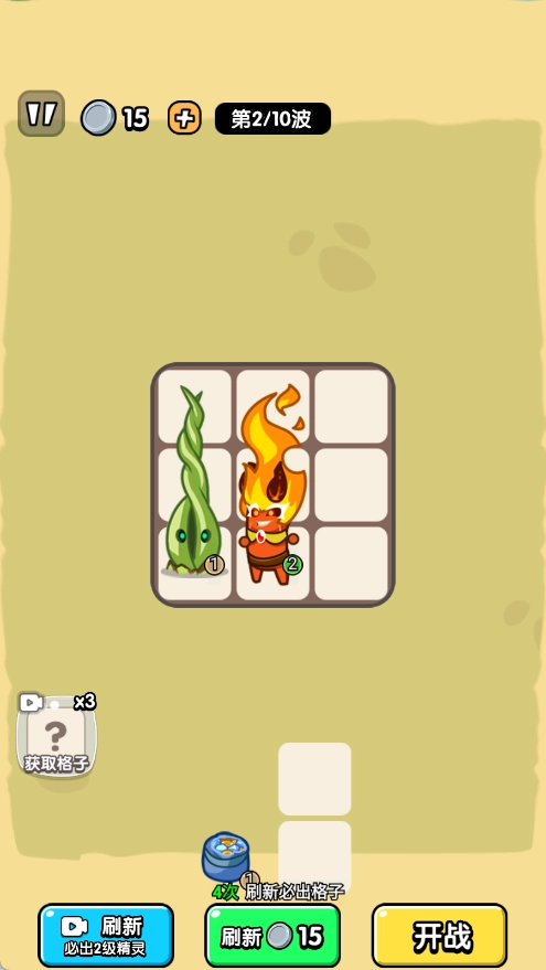 可以通过有限次的刷新机制来获取随机精灵,需要策略性地搭配不同属性的作战单位。