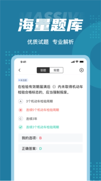 机动车检测维修工程师考试聚题库不仅收录了历年真题与模拟试题的各类题型,其设计理念还致力于让学习过程更具灵活性与高效性。您能够不受时间约束,在任何地点随时开展答题训练。应用里新加入的模拟考试功能,更能助力您在不同情境下做好充分准备。另外,实用的搜题功能支持您在遇到难题时迅速获取答案,甚至能通过语音输入或拍照识别的方式进行搜索,大幅增强了学习的效率与便捷程度。