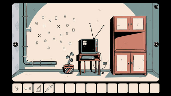 在柜子上,有个玻璃酒杯,就这么静悄悄地在你眼前,从右侧缓缓移到了左边。这一幕,让你心里不禁泛起一阵惊悚,但你还是伸手把酒杯拿了起来。随后,你注意到唯一没上锁的柜门,打开一看,里面又是一张相片。和之前那张如出一辙,同样是从屋内朝着屋外拍摄的画面。画面中的还是那个身着蓝衣的男人,正走在路上,手里捧着份报纸在读。相片上标注的日期是星期五下午四点三十九分,下方还写着一行字:“他在假装读报纸”。 这时,你又瞧见电视机的电源线断开了,旁边紧挨着花盆。仔细一打量,你发觉这花盆的花纹和之前看到的那盆不太一样。再往墙上看去,布满了许多画符,一旁还有根粗大的管道。管道拐弯的地方破了个洞,你好奇地凑近,往洞里瞧去,这一看,可不得了,居然有双眼睛在里头瞪着你。那双眼眨了几下,转瞬就消失不见了,取而代之的是一把钥匙露了出来。然而,钥匙在里面,你根本够不着。