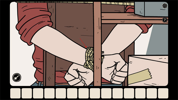 游戏一开始,主角被绳索束缚,玩家需要通过点击角色并模拟摩擦绳索的动作来帮助主角挣脱束缚。