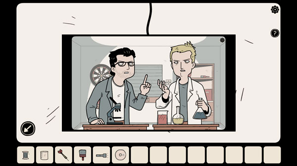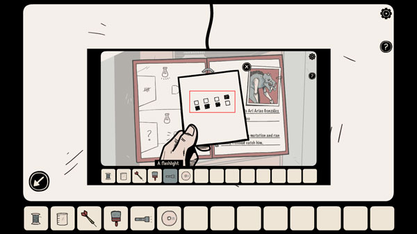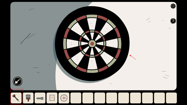 6、点击显微镜下方的柜子,获取手电筒和带有化学方程式的镜片,并在飞镖盘上拾取飞镖。