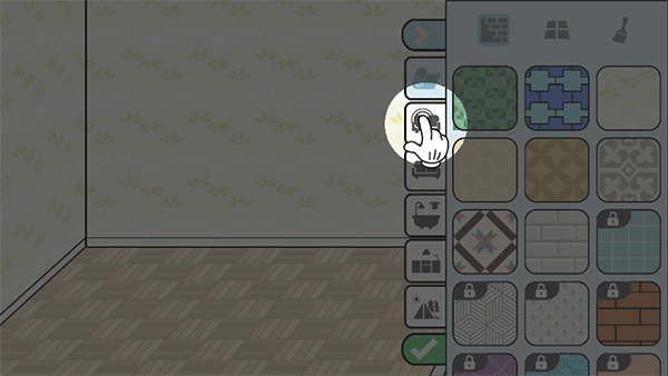 4、你能够依据侧边的图标挑选相应的家具装饰,也可以对房屋的墙纸、瓷砖等进行更改。