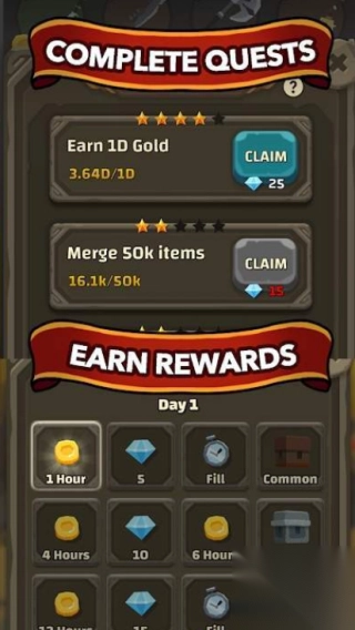 2、来到任务界面,点击箭头所指的“1-Hour”奖励区域,领取相应奖励,以助力完成“COMPLETE - QUESTS”任务。