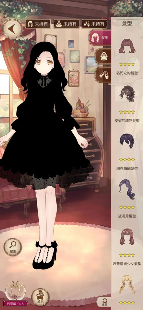 化身主角“爱丽丝”,你可以给她进行换装,如发型、服装、鞋子等