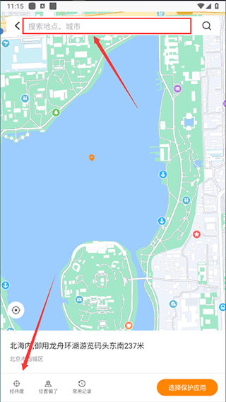 3、滑动地图、经纬度填写,或者上方搜索地点,选择虚拟位置;