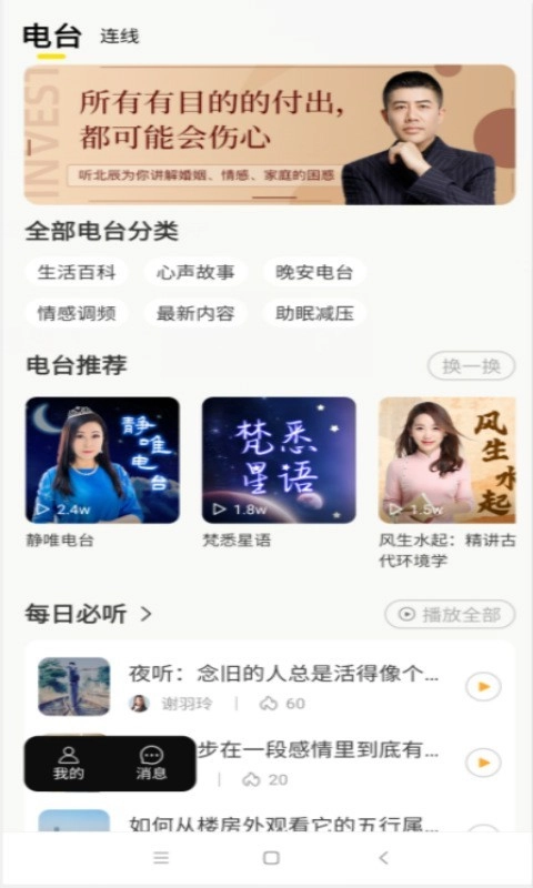 实时阅览电台分类类别,尽情收获电台内容;