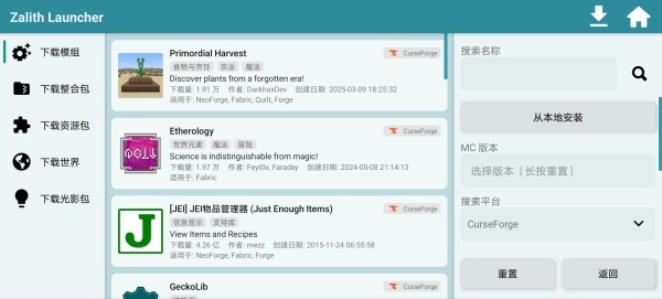 最后直接搜索自己喜爱的模组就行,也可以选择从本地进行安装。