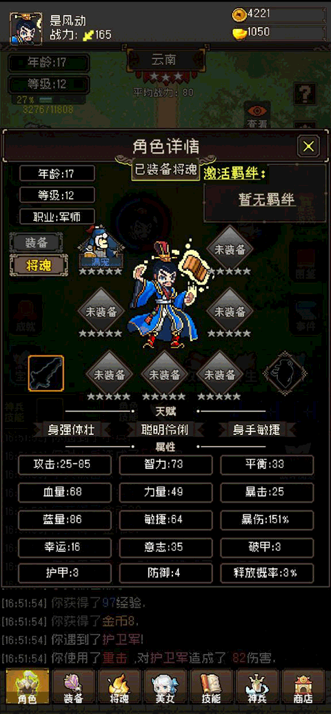 将魂系统依据武将划分为多个等级,包括稀有、史诗、传奇和完美四种品质,每种品质均设有相应的升级上限。待游戏正式上线后,玩家可在游戏中亲身体验。此外,系统还提供多种类型的加成效果,例如攻击力提升、防御力增强等。
