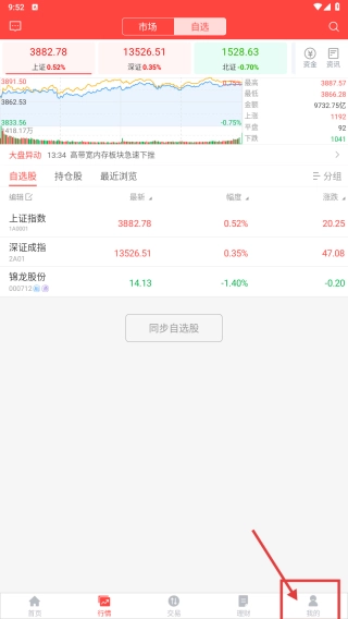 打开理财类应用后,点击底部导航栏中的“我的”选项,即可进入个人中心页面。