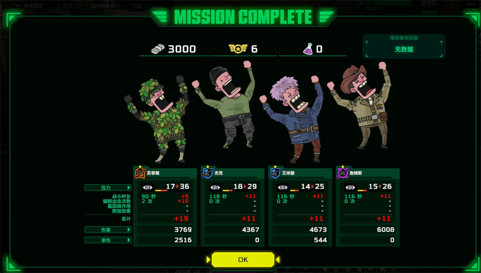 局外也有一些较为轻度的养成系统,例如选择不同种类的士兵组成四人远征队;点满科技树以强化医疗车和无人机的性能,或扩充支援设备槽等。