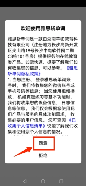 首次启动应用,请在欢迎弹窗点击同意进入。