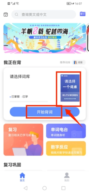 选择词库点击开始背词进行记忆练习。