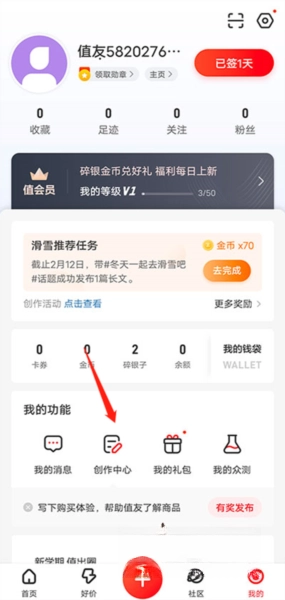 接着点击“创作中心”。