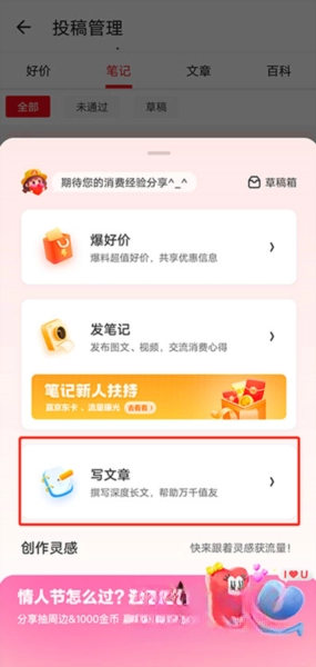 在弹出的选项里,挑选“报好价”“发笔记”或者“写文章”。