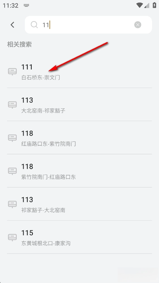输入路线查询,选择路线