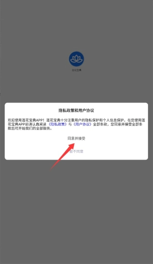首次打开应用时,需要阅读并同意用户服务协议与隐私条款,点击确认按钮后即可进入主界面。
