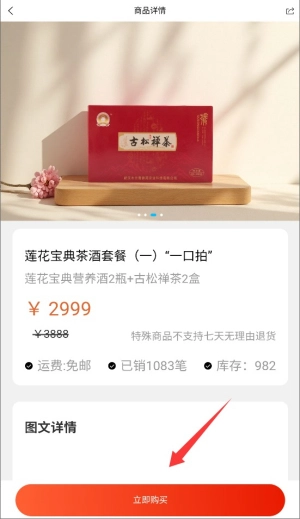 在确认好商品的规格与价格之后,点击页面右下角的“立即购买”按钮,即可完成下单操作。