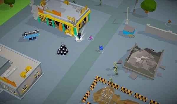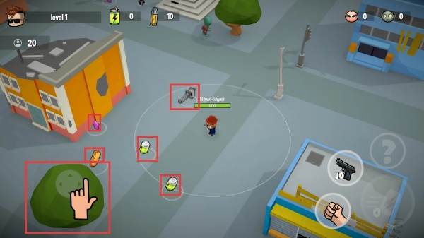 在关卡场景里,滑动左侧的摇杆就能操控角色移动,同时拾取武器和各类道具,以此为接下来对抗僵尸做好准备。