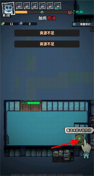 在场景里点击床这类可交互设施,试着修复它们来获得增益效果,为之后的关卡挑战提供助力。