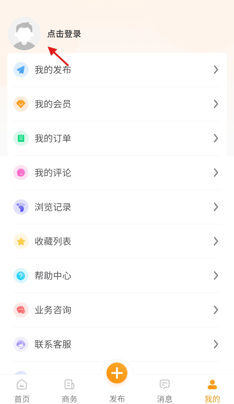 进入“我的”页面后,轻点头像区域,页面就会跳转到登录注册界面。