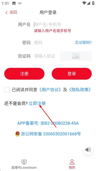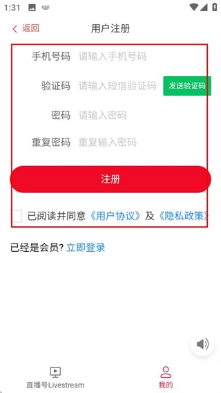 进入直播号后,点击底部的“我的”选项,就能进入用户登录页面。