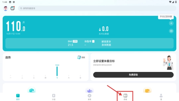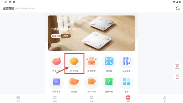 打开体重管理类应用,点击底部的商城选项,进入商城页面。