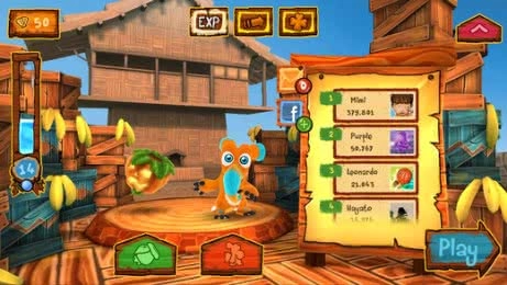 剧情设定:故事的舞台是世纪大洪水退去后的格里芬岛,主角松鼠Finny和Leah因为同伴被蝙蝠掳走,踏上了一场营救冒险。这款游戏没有重复诺亚方舟经典的造船情节,而是把重点放在了方舟上的动物们在荒岛的探索上,和电影IP形成了有趣的联动。 视觉风格:运用色彩明亮的卡通画风,小岛场景中翠绿的植被与蓝天相互映照,花朵、岩石等细节描绘得十分细腻,角色的造型圆润可爱。流畅的动画效果加上清新的场景,让玩家在跑酷过程中获得轻松治愈的视觉感受。 独特跑酷操作:玩法和传统横版跑酷不同,主角需要借助岛上类似大炮的植物来移动,玩家要找准时机点击屏幕,把角色从大炮里发射出去,并且让其被另一端的大炮接住,这样就能推进冒险。遇到空中的怪鸟时,快速点击屏幕就能将其消灭,操作简单但需要把握好时机。 生命值与难度机制:游戏有四种可以选择的小动物角色,每个角色一开始都有3颗红心,如果掉落到地面就会扣除1颗,红心用完的话冒险就会结束并进入评分环节。随着冒险距离的增加,游戏难度会逐渐提高,物体移动速度变快,障碍物也更加多变,对玩家反应能力的考验也随之增大。