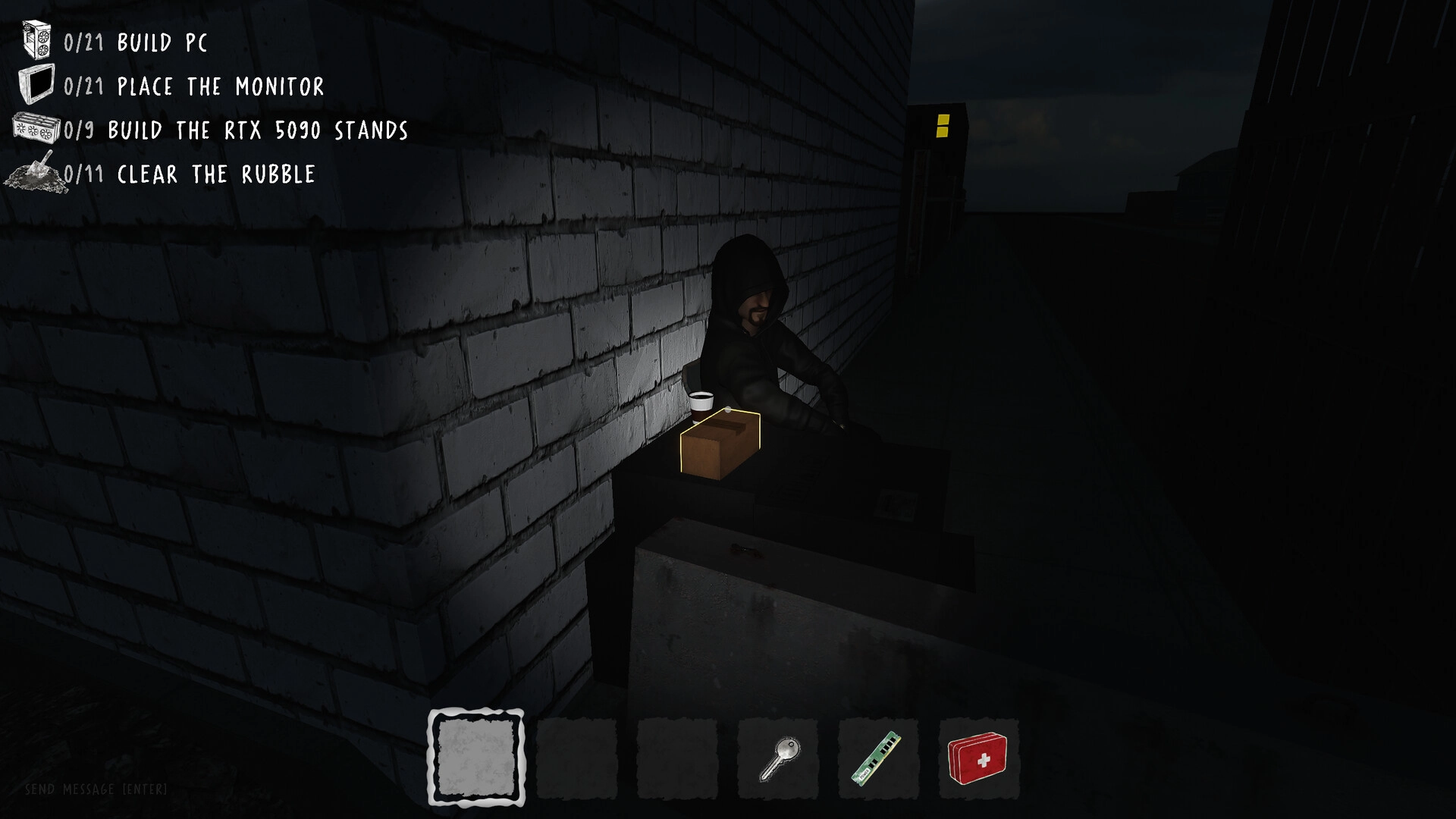 《电脑组装噩梦》是一款支持 1-4 名玩家的多人合作恐怖游戏,在内存危机爆发之前,赶紧把淘到的廉价电脑配件运到你的网吧,组装电脑,完成任务,但千万别被那位执着的女管家抓住!