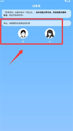 启动应用后,请先根据个人性别选择合适虚拟形象。