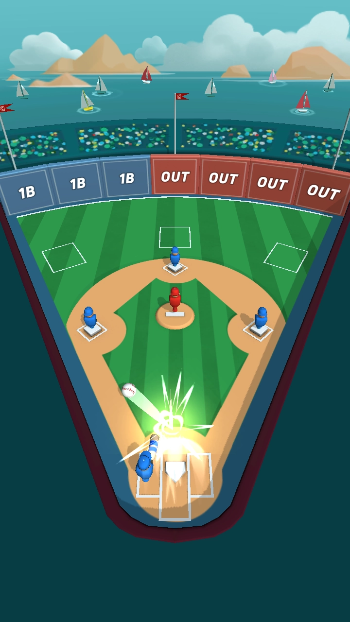 尽量引导角色按顺序跑过一垒、二垒、三垒,最终返回本垒,以此完成一次得分。持续重复击球与跑垒的流程,争取拿到更高的分数。