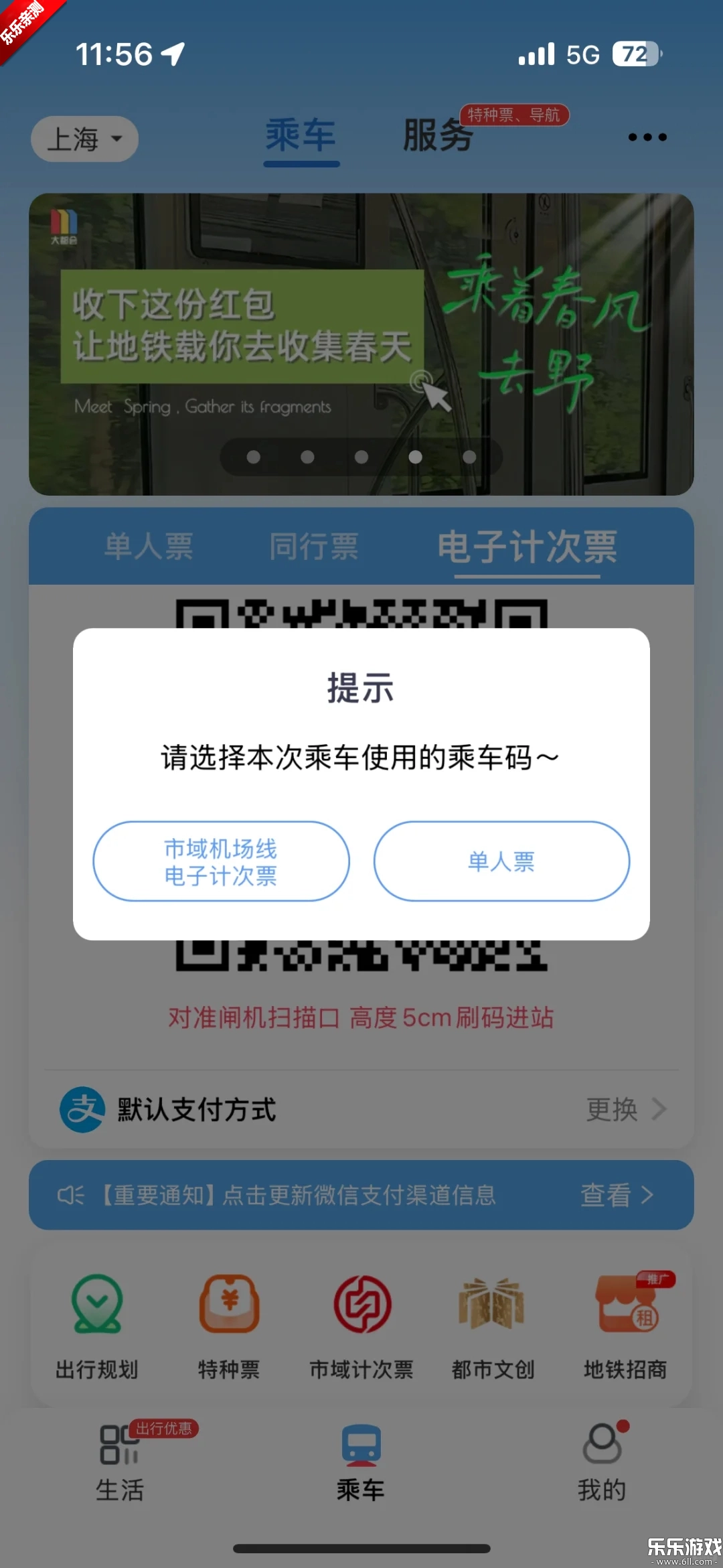 乘车页面:用户在地铁进站和出站的时候刷一下二维码就可以了;