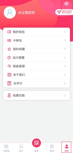 用户在我的页面中点击右上角的设置按钮;