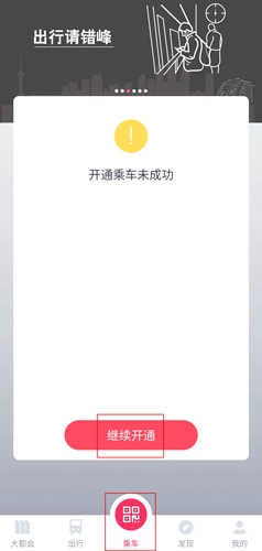 用户在乘车按钮中点击继续开通按钮;