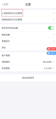 在设置页面中点击上海地铁支付方式管理按钮;