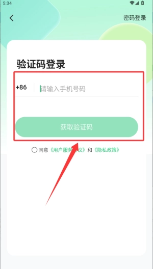 先把手机号输入点击获取验证码。