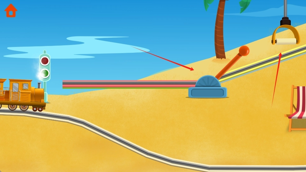 轨道拼接闯关:依据场景中的障碍情况,拖动各种形状的轨道碎片进行拼接,组成完整的行驶路线,避开山洞、河流等阻碍物,使小火车能够顺利到达下一站,以此锻炼空间思维能力。