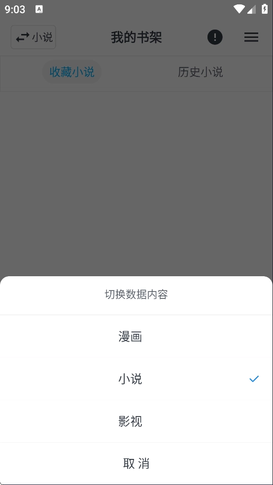 1、打开应用后,选择你希望阅读漫画、小说、影视(多个来源可以切换)。