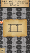 1、每个数字表示每组需要填满的方格数。填满全部5个方格,即可完成第一个教程的学习。