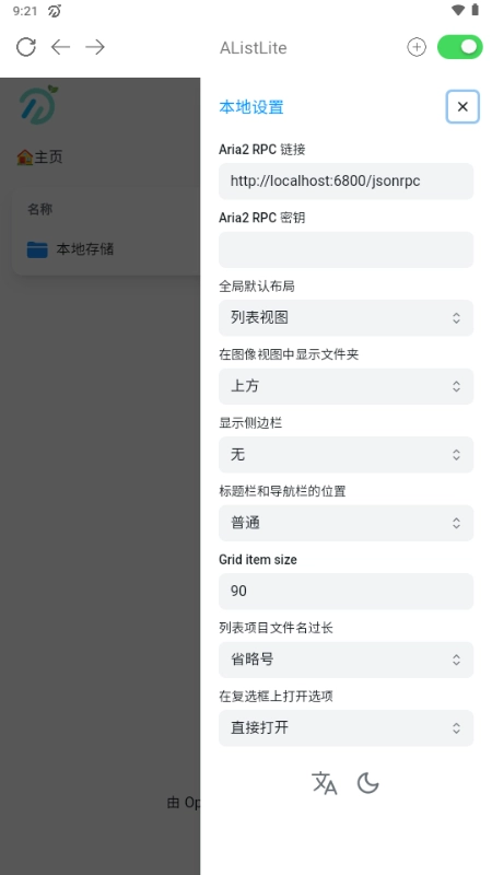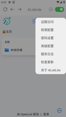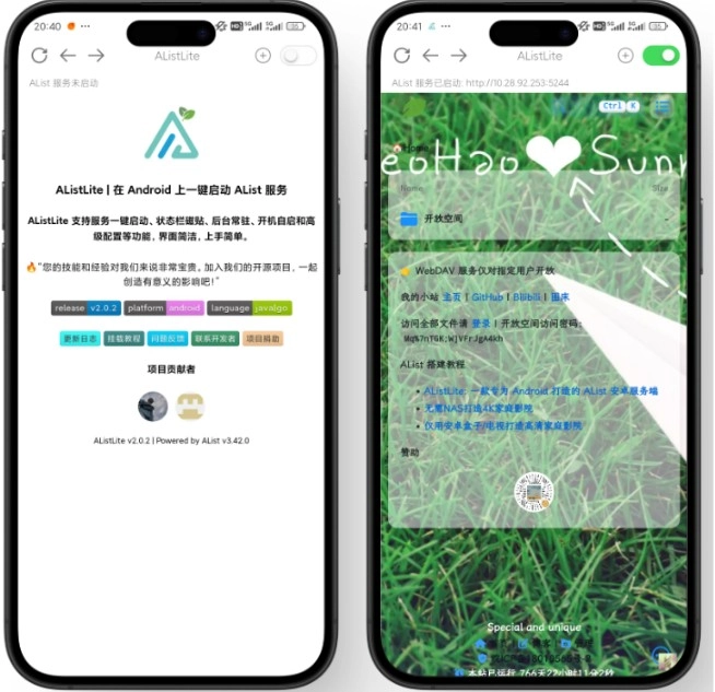 1. 安装后启动服务,在PC浏览器输入手机显示的IP地址(如192.168.1.10:5244)进入管理后台